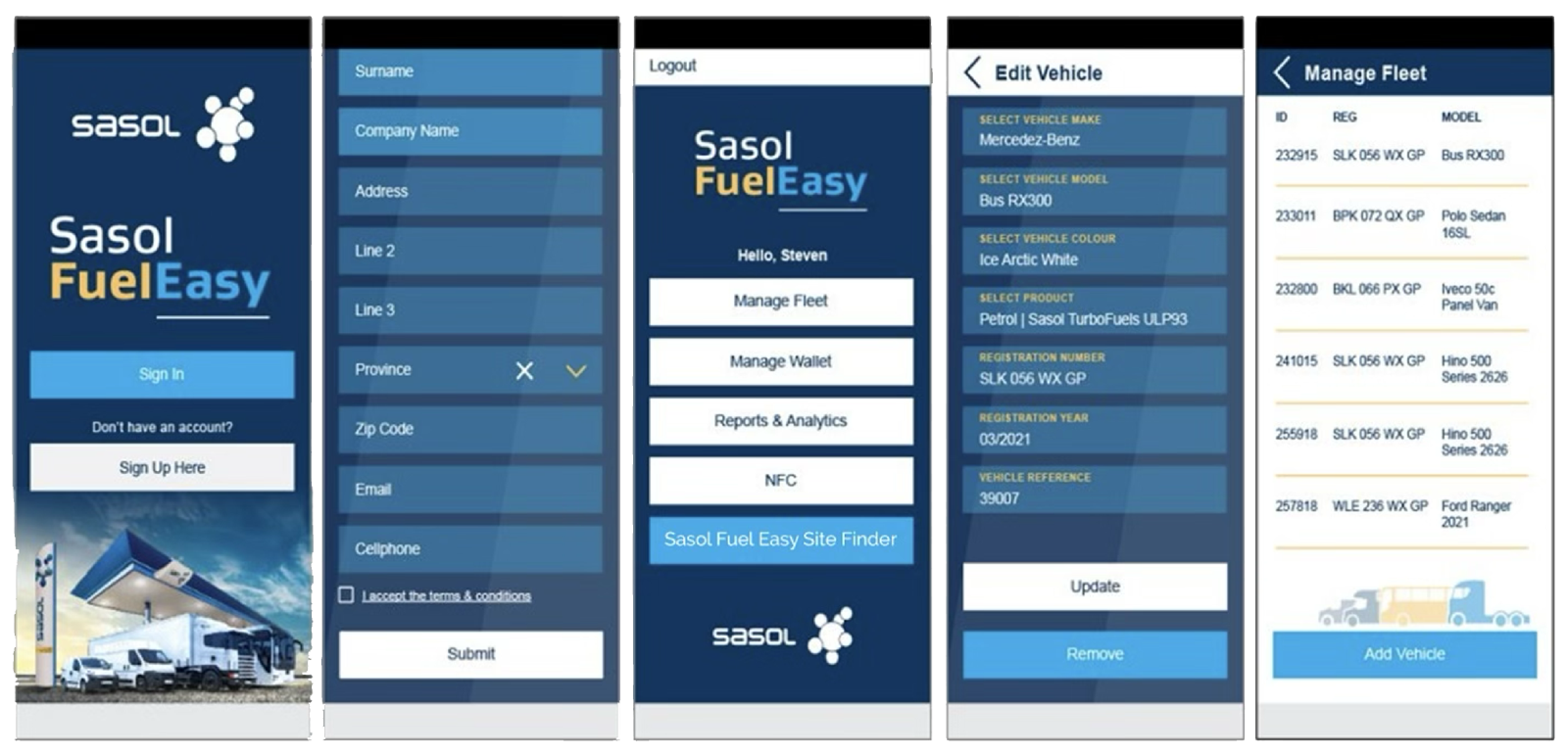 Experience total control and efficiency with the Sasol FuelEasy App – your all-in-one solution for real-time expense management and seamless fleet operations. Powered by secure NFC technology, enjoy fast, cardless refuelling while ensuring enhanced security and fraud prevention at every transaction. Track fuel spend live with detailed reporting and gain full visibility into your fleet’s expenses. With streamlined refuelling processes, you can reduce downtime and keep your fleet moving 24/7. FuelEasy empowers you to optimise operations, lower costs, and maintain uninterrupted business momentum – anytime, anywhere.